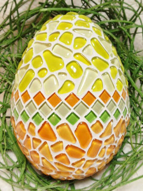 Create a colourful and eye-catching Easter egg using glass mosaic! Looks beautiful on its own or as part of a festive spring arrangement.