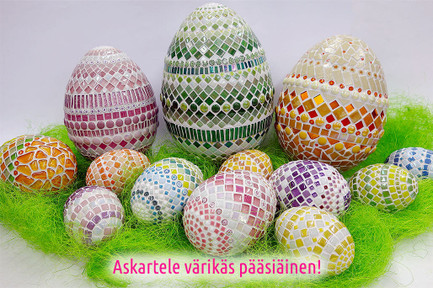 Start your Easter preparations early and craft beautiful decorations with mosaic technique – lasting for years to come. Think Easter eggs, bowls, and animal shapes!