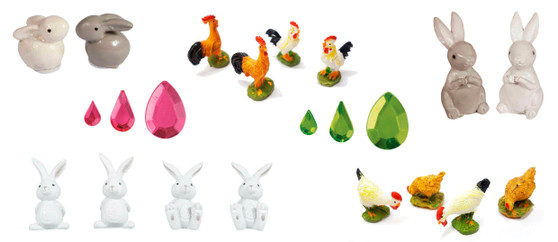 Finish your mosaic eggs and Easter arrangements with cute small figurines and decorations. Glue bunnies, roosters and hens onto the mosaic eggs or place them among sprouted grass. All these lovely decorations can be found in the Easter crafting product category.